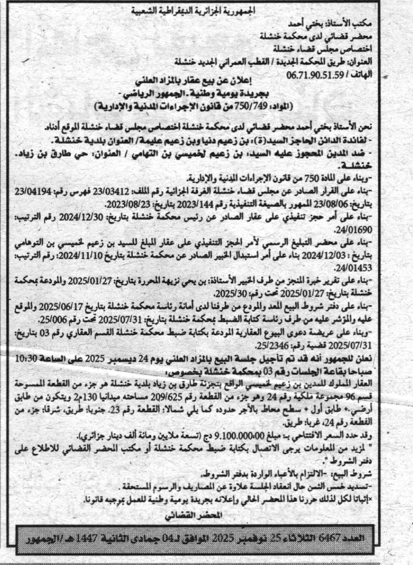 Il sera procédé à la vente au plus offrant et dernier enchérisseur le :