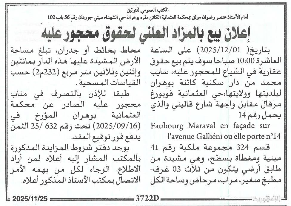 Il sera procédé à la vente au plus offrant et dernier enchérisseur le :