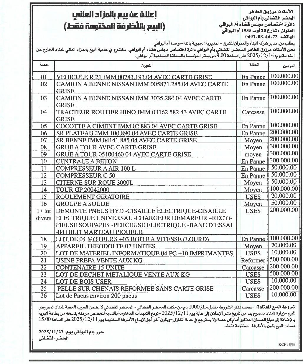| (*) LA DATE EST DONNÉE À TITRE INDICATIF, VEUILLEZ LA VÉRIFIER LORS DU RETRAIT DU CAHIER DES CHARGES OU AUPRÈS DE L\'ÉMETTEUR | |