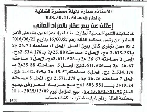Il sera procédé à la vente au plus offrant et dernier enchérisseur le :