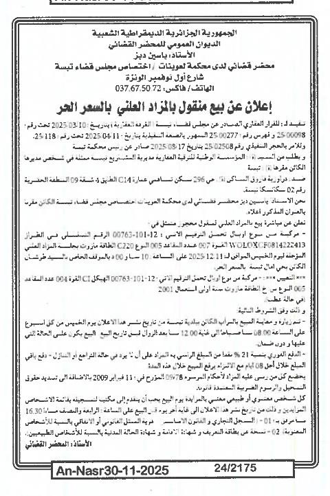 Il sera procédé à la vente au plus offrant et dernier enchérisseur le :