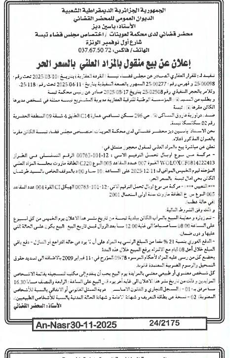 Il sera procédé à la vente au plus offrant et dernier enchérisseur le :