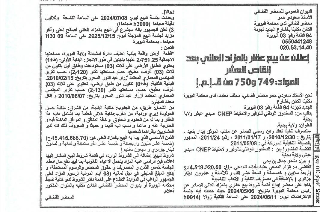 | Paru dans le journal : الجزائر | |