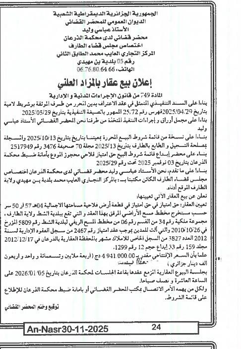 | Paru dans le journal : النصر | |