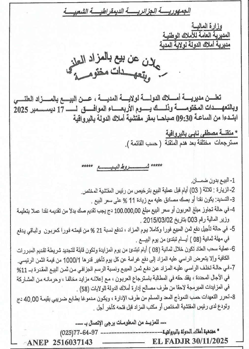Il sera procédé à la vente au plus offrant et dernier enchérisseur le :