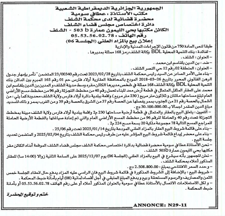 | Wilaya : Chlef | |