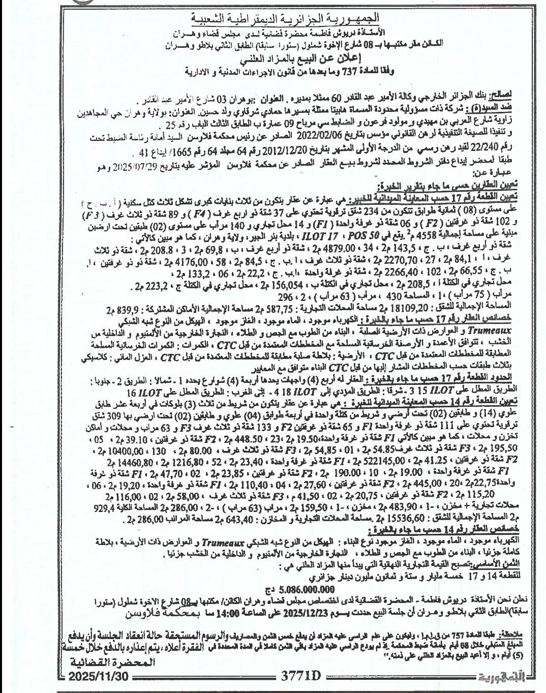 Il sera procédé à la vente au plus offrant et dernier enchérisseur le :