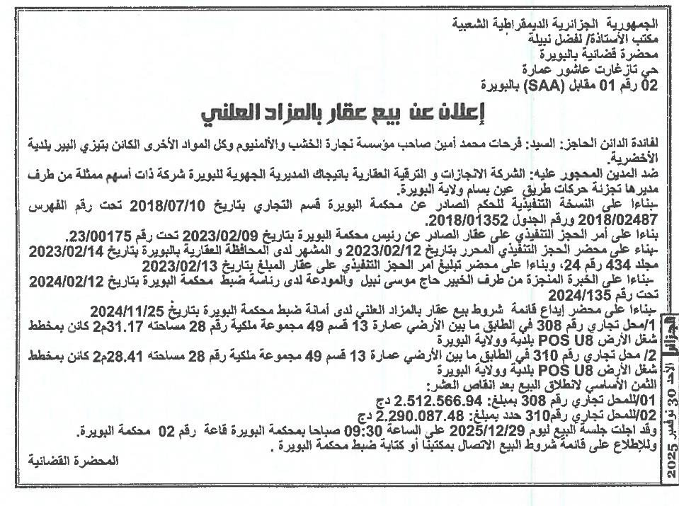 | Paru dans le journal : الجزائر | |