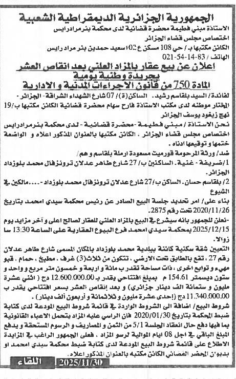 Il sera procédé à la vente au plus offrant et dernier enchérisseur le : 07/12/2025';