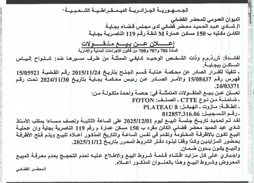 | Objet: Vent Camion CTTE - Modèle : FOTON | |
