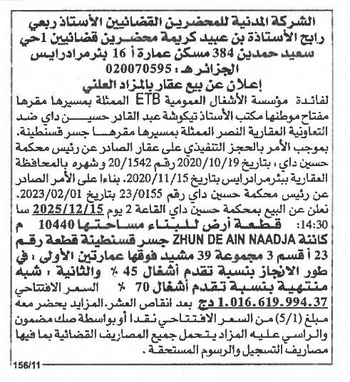 Il sera procédé à la vente au plus offrant et dernier enchérisseur le :
