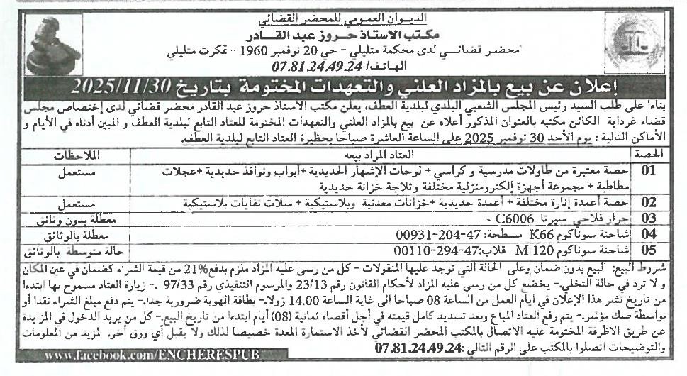 Il sera procédé à la vente au plus offrant et dernier enchérisseur le :