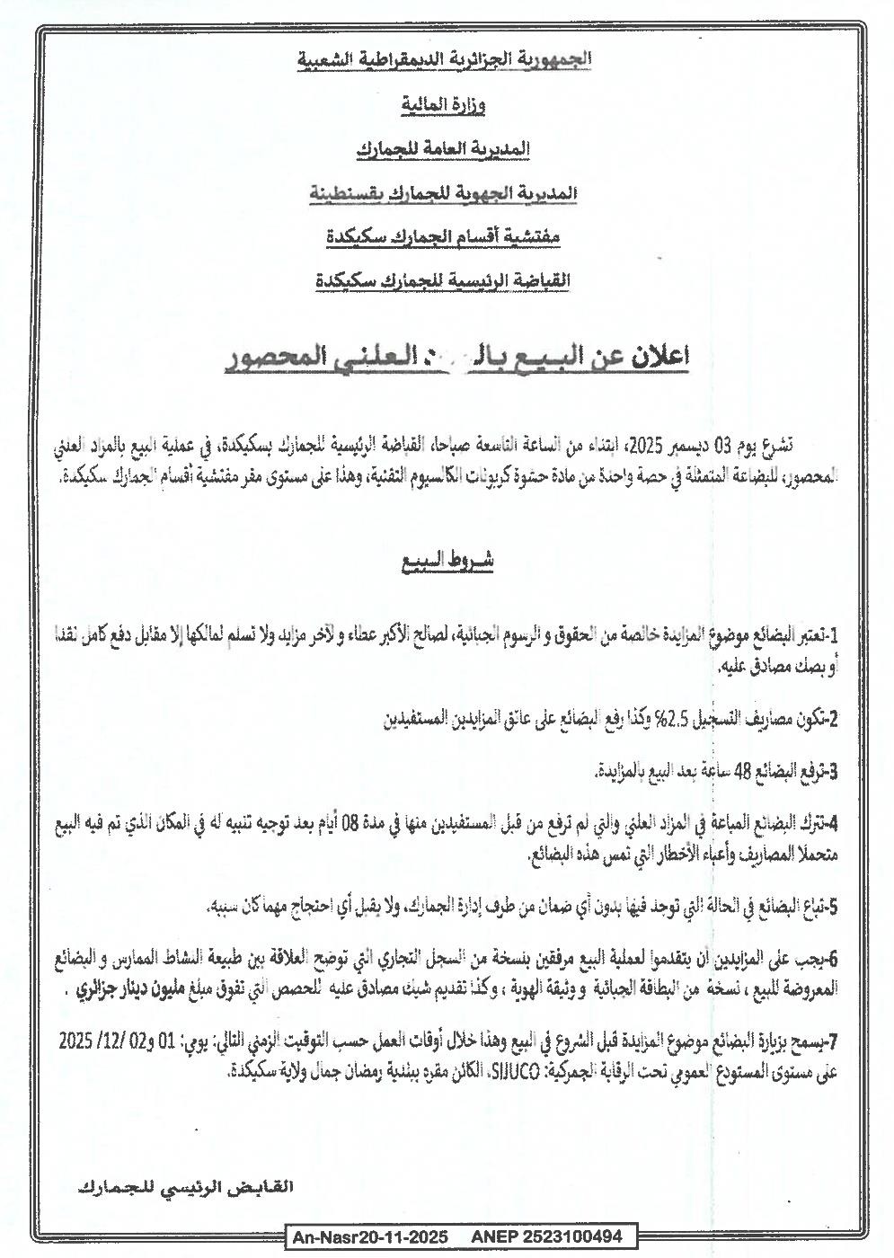Il sera procédé à la vente au plus offrant et dernier enchérisseur le :