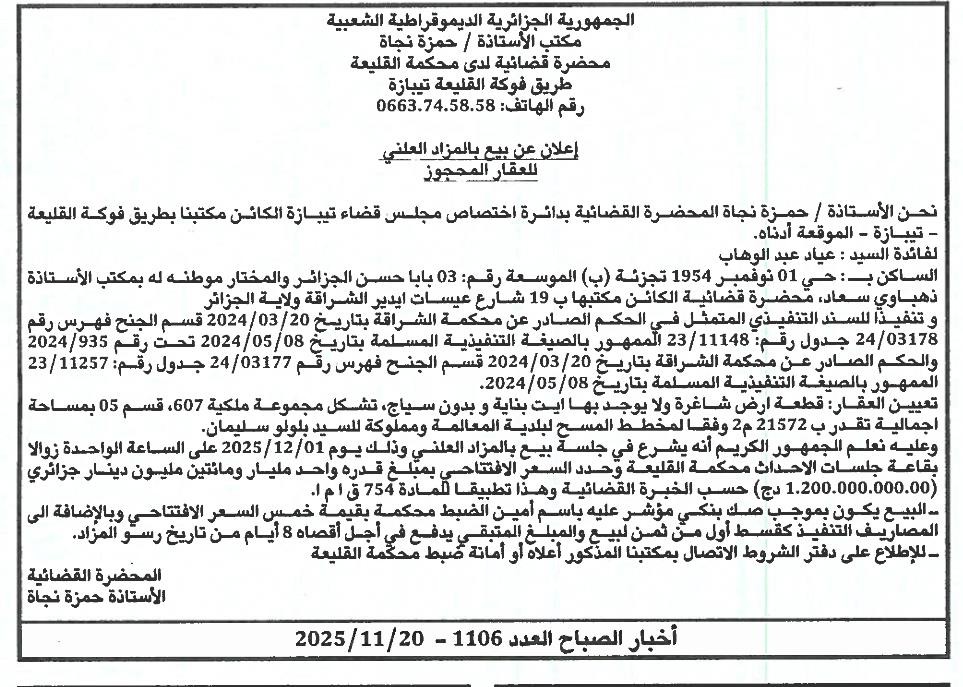 | Paru dans le journal : اخبار الصباح | |
