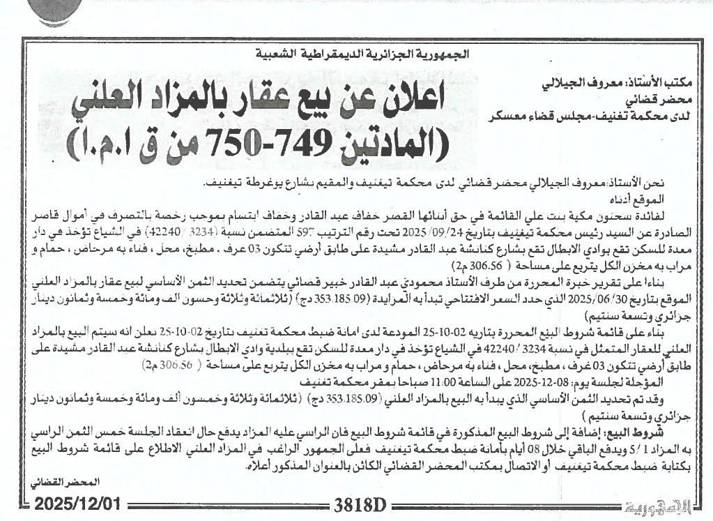 Il sera procédé à la vente au plus offrant et dernier enchérisseur le :