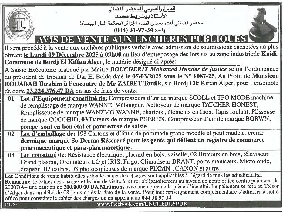 Il sera procédé à la vente au plus offrant et dernier enchérisseur le :