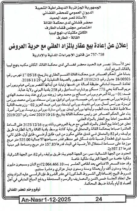 Il sera procédé à la vente au plus offrant et dernier enchérisseur le :