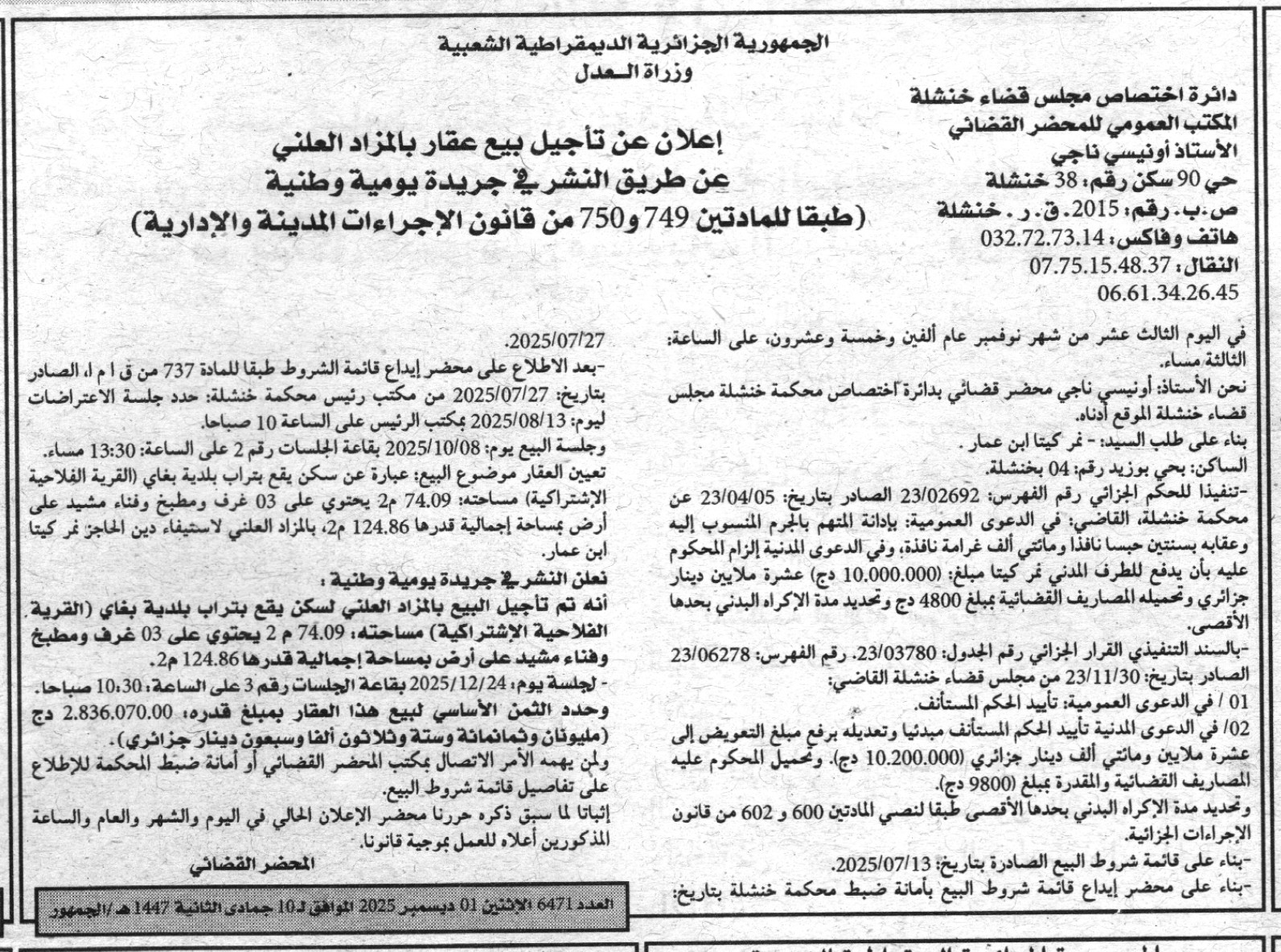 Il sera procédé à la vente au plus offrant et dernier enchérisseur le :