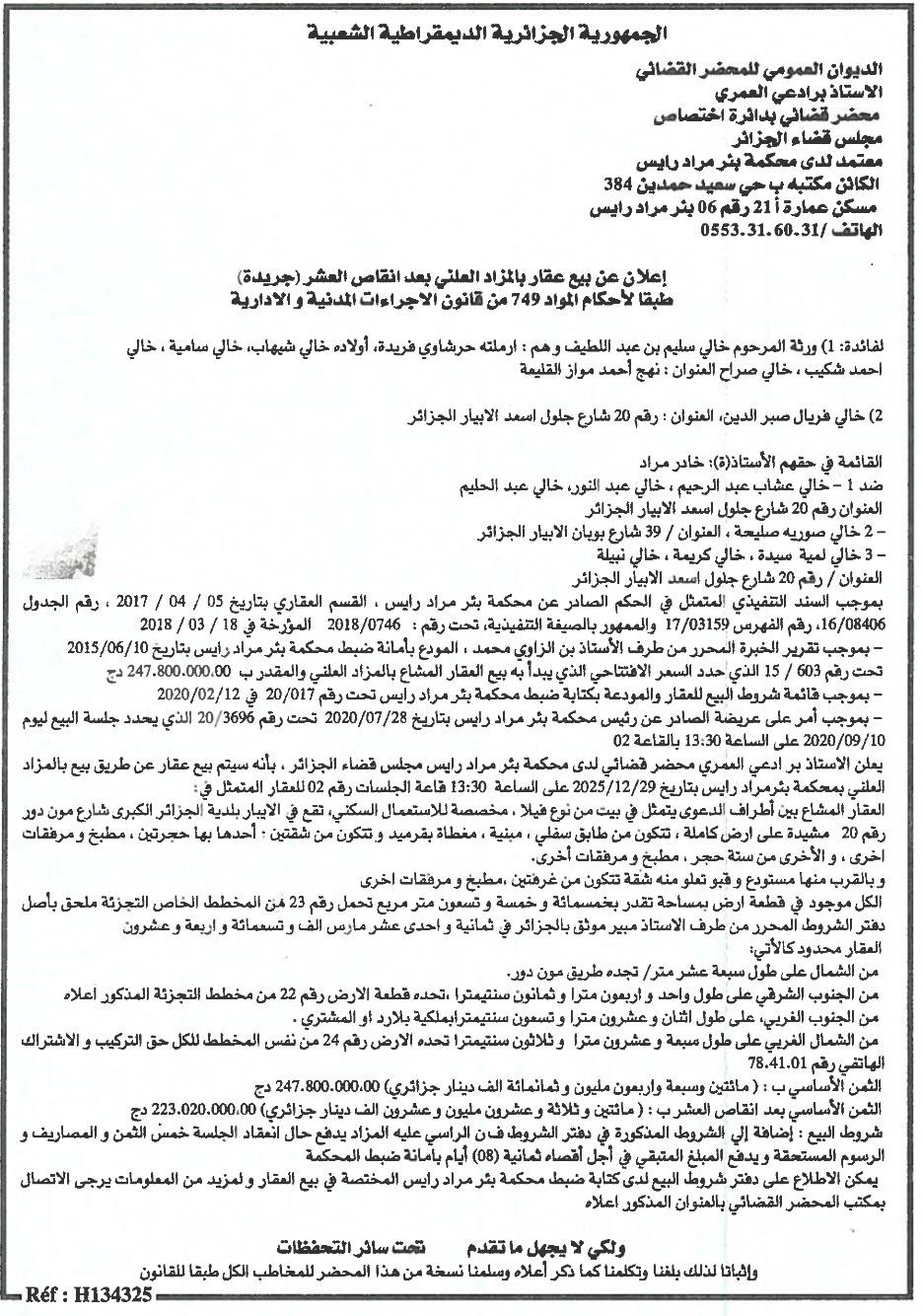 Il sera procédé à la vente au plus offrant et dernier enchérisseur le :