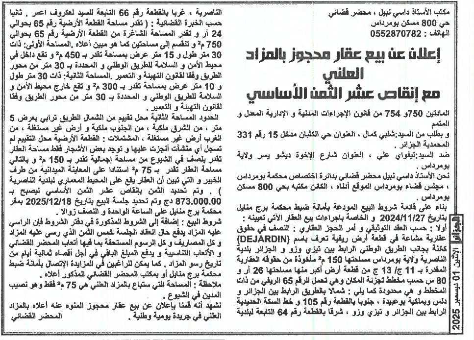 Il sera procédé à la vente au plus offrant et dernier enchérisseur le :