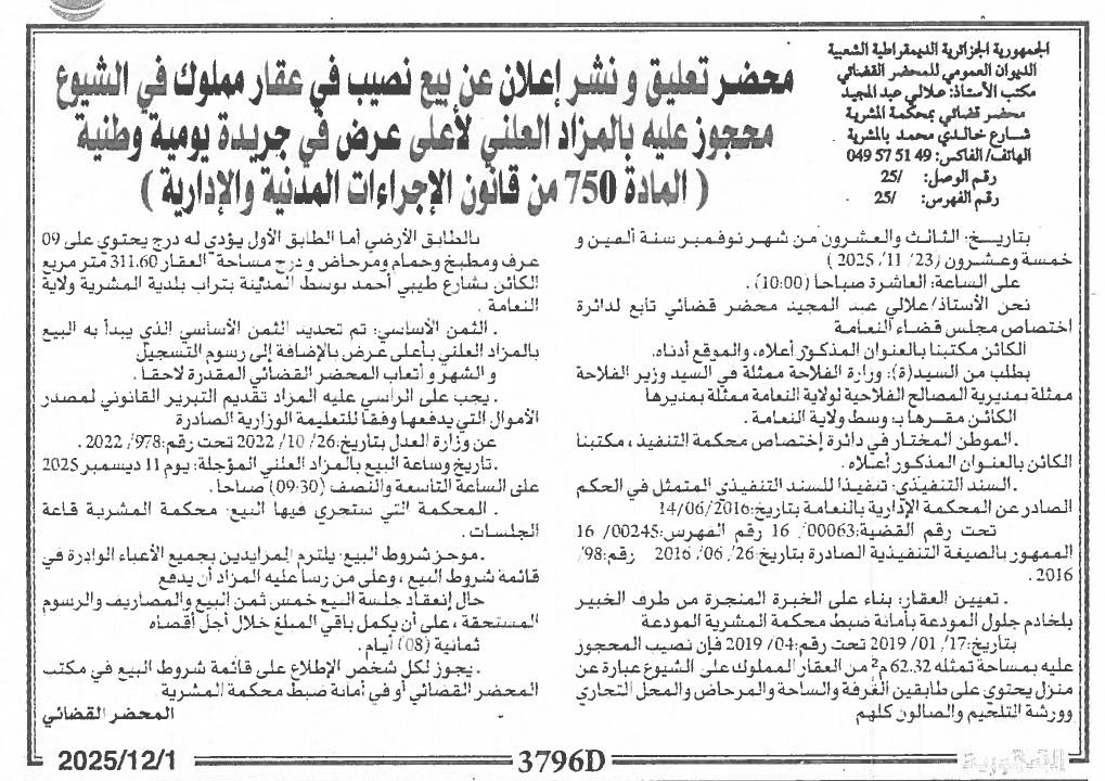 Il sera procédé à la vente au plus offrant et dernier enchérisseur le :
