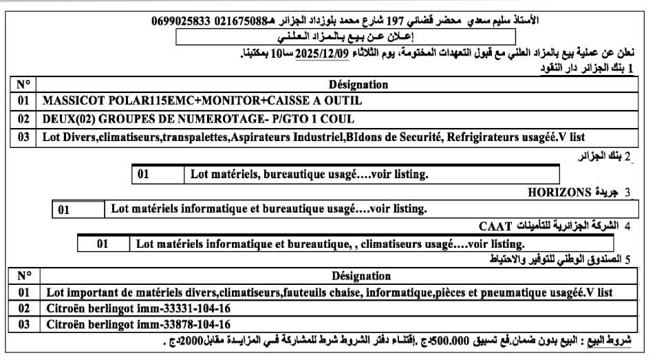 Il sera procédé à la vente au plus offrant et dernier enchérisseur le :