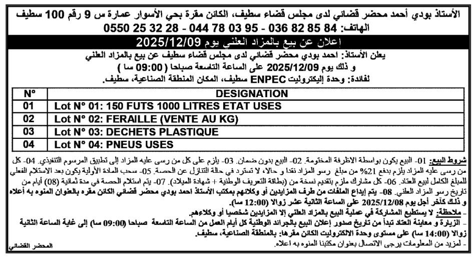 Il sera procédé à la vente au plus offrant et dernier enchérisseur le :