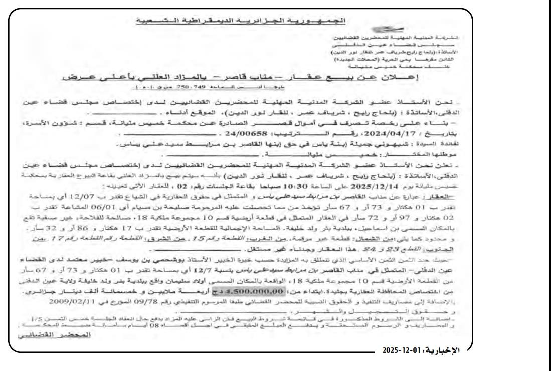 Il sera procédé à la vente au plus offrant et dernier enchérisseur le :