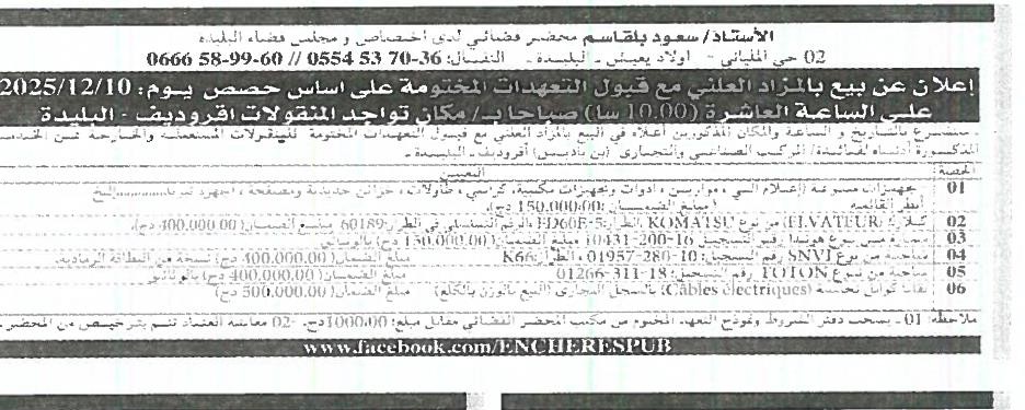 Il sera procédé à la vente au plus offrant et dernier enchérisseur le :