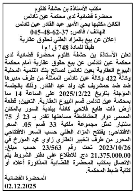 Il sera procédé à la vente au plus offrant et dernier enchérisseur le :
