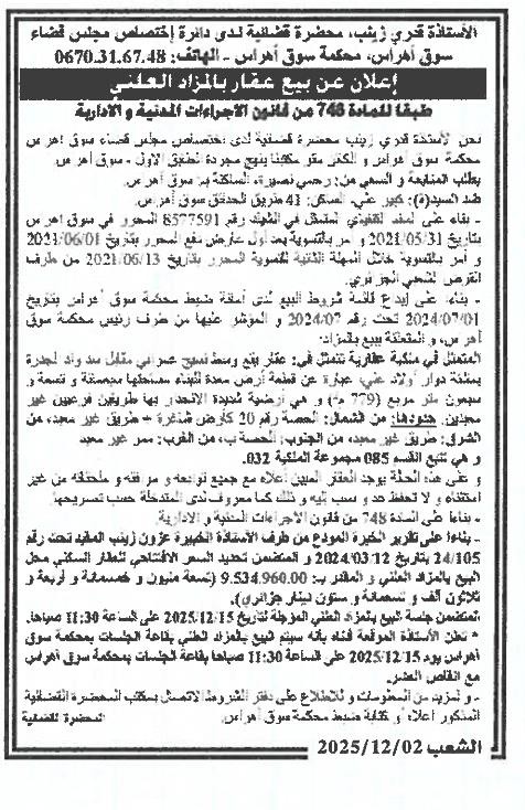 Il sera procédé à la vente au plus offrant et dernier enchérisseur le :