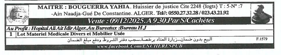 Il sera procédé à la vente au plus offrant et dernier enchérisseur le :