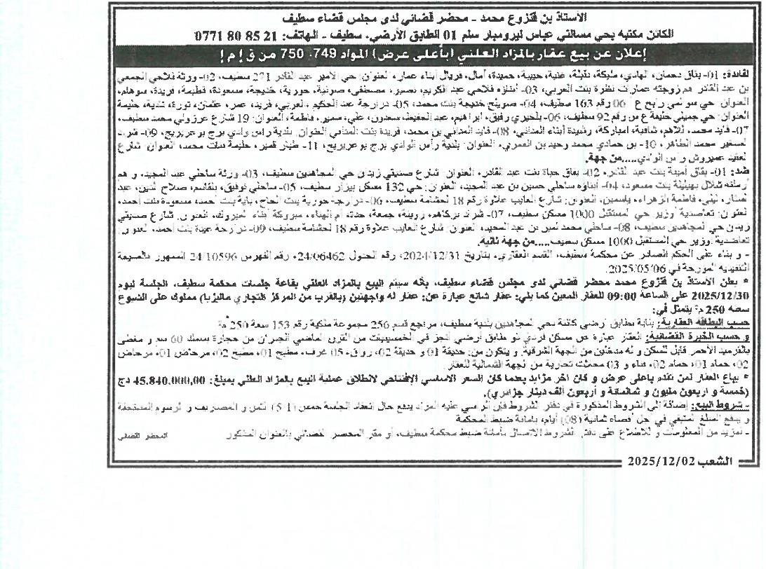 Il sera procédé à la vente au plus offrant et dernier enchérisseur le :