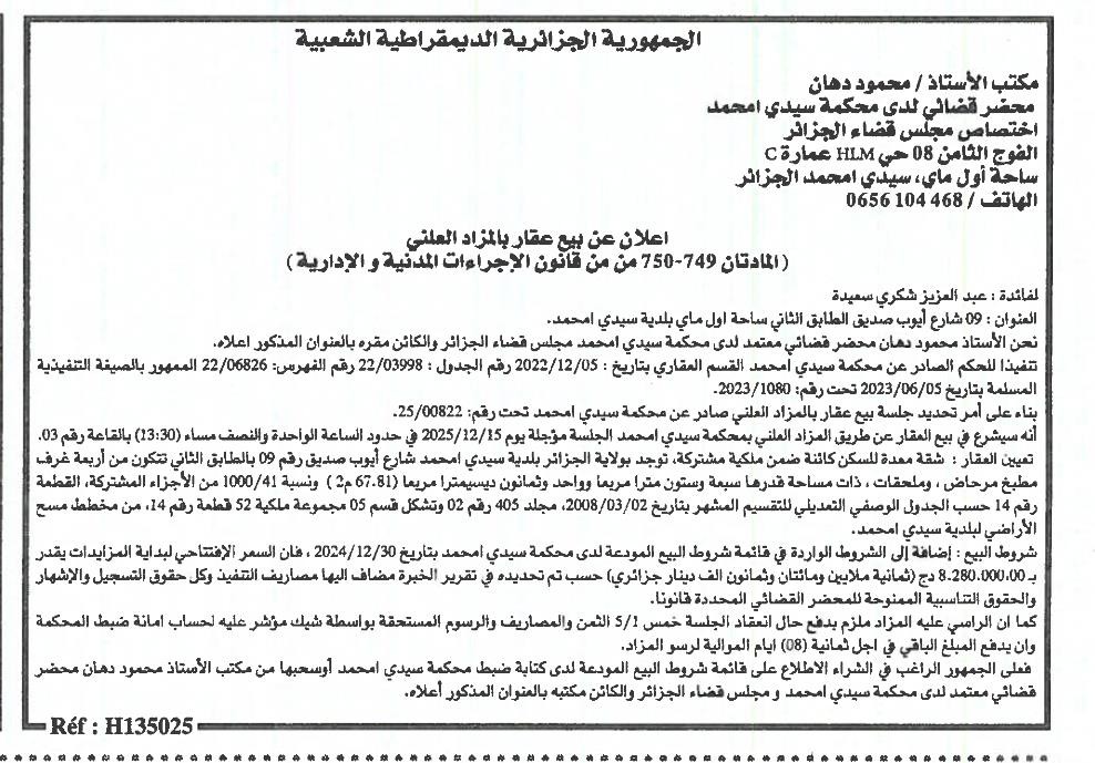 Il sera procédé à la vente au plus offrant et dernier enchérisseur le :