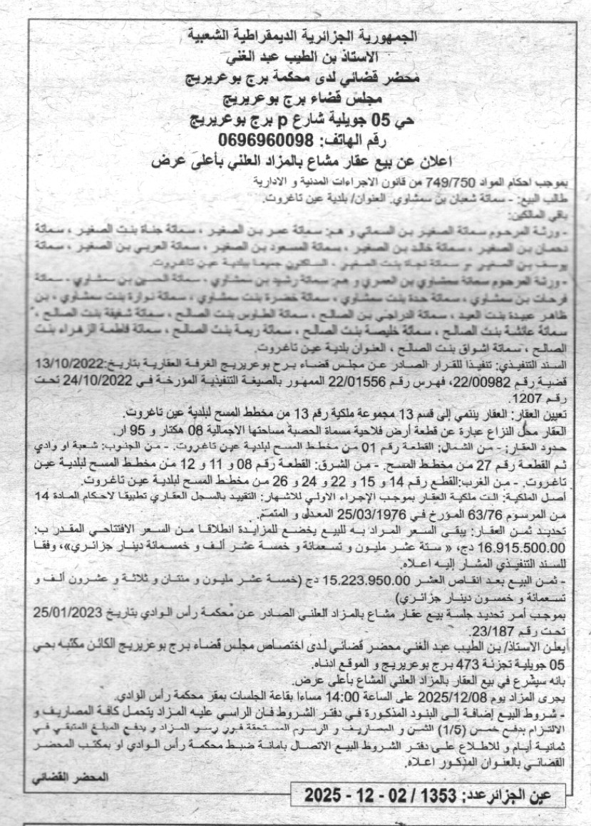 | Paru dans le journal : عين الجزائر | |
