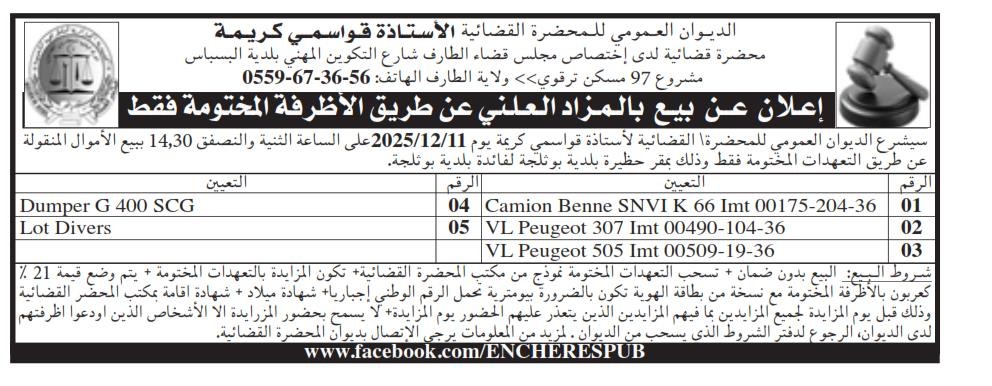 Il sera procédé à la vente au plus offrant et dernier enchérisseur le :