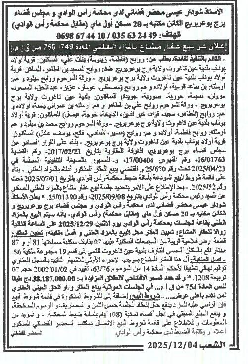 Il sera procédé à la vente au plus offrant et dernier enchérisseur le :