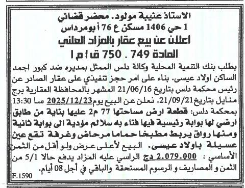 Il sera procédé à la vente au plus offrant et dernier enchérisseur le :