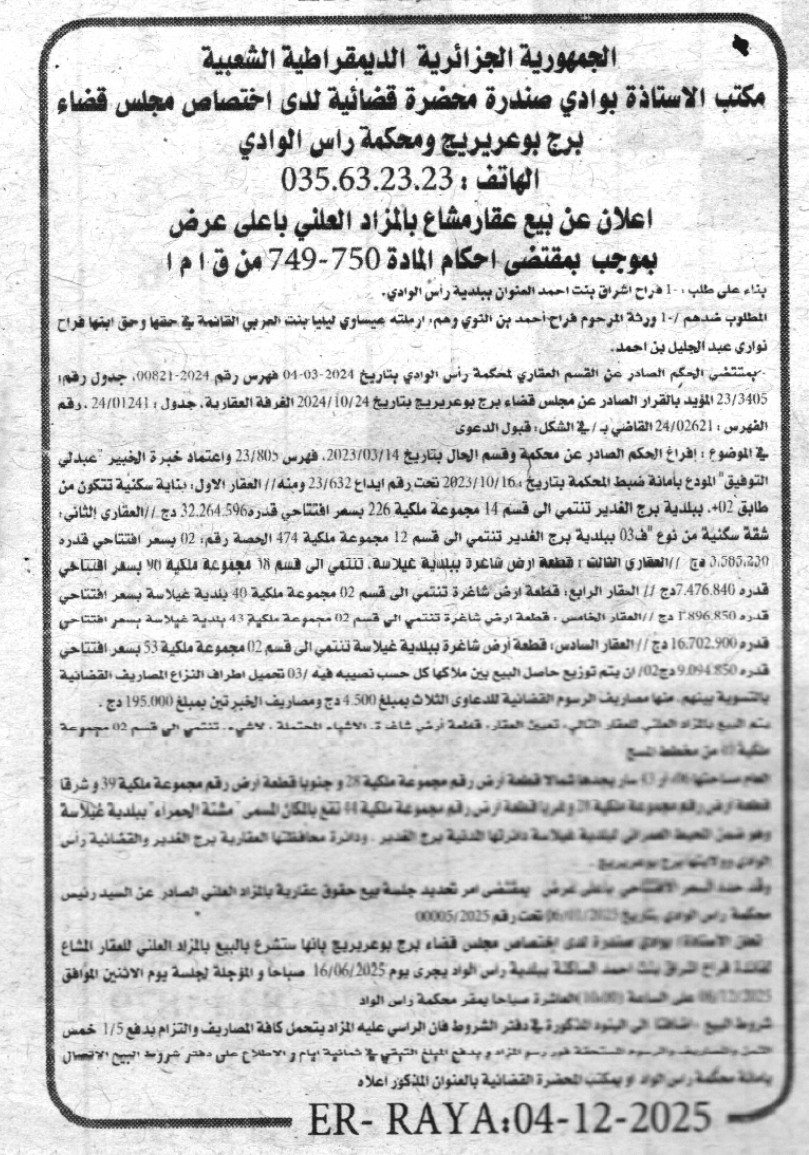 Il sera procédé à la vente au plus offrant et dernier enchérisseur le :