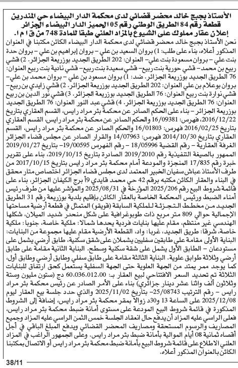 Il sera procédé à la vente au plus offrant et dernier enchérisseur le :