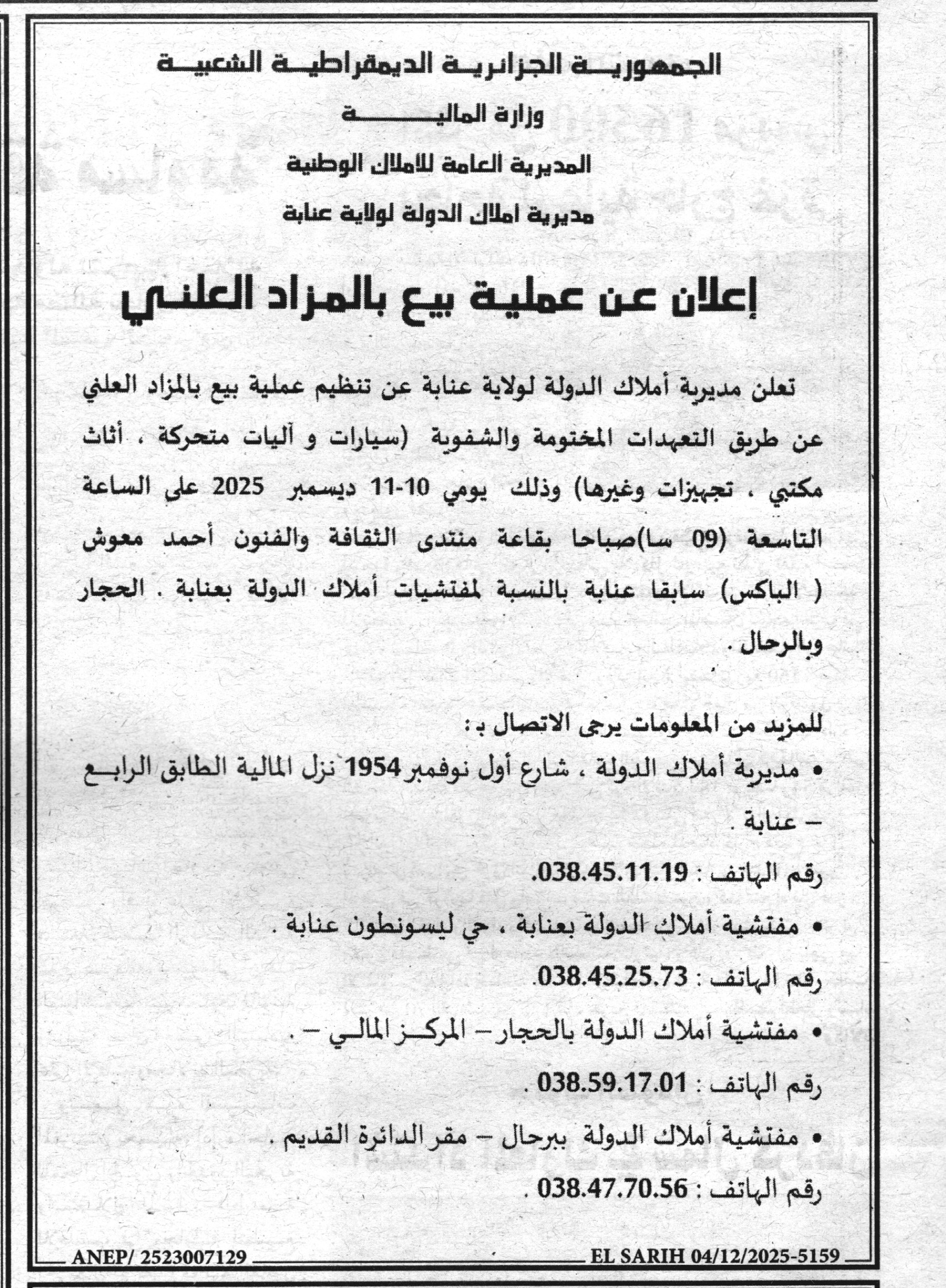 Il sera procédé à la vente au plus offrant et dernier enchérisseur le :