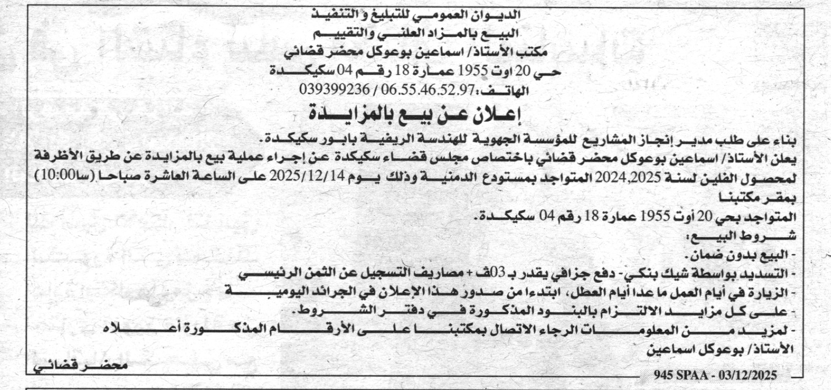 Il sera procédé à la vente au plus offrant et dernier enchérisseur le :