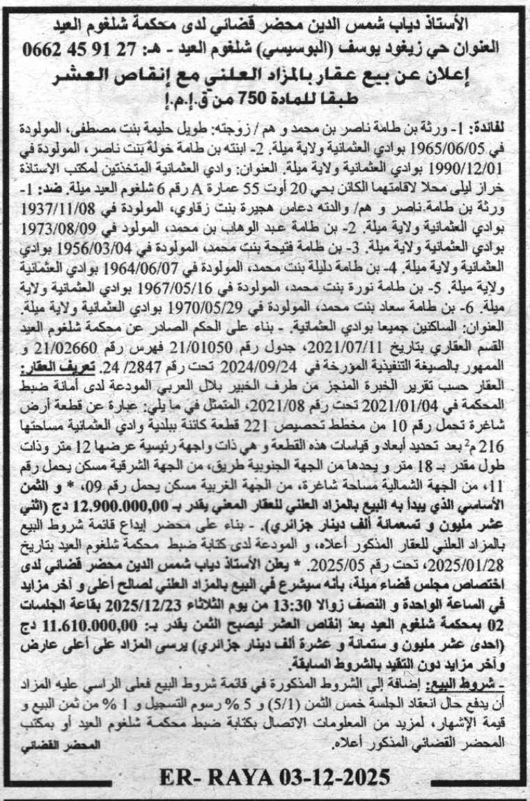Il sera procédé à la vente au plus offrant et dernier enchérisseur le :