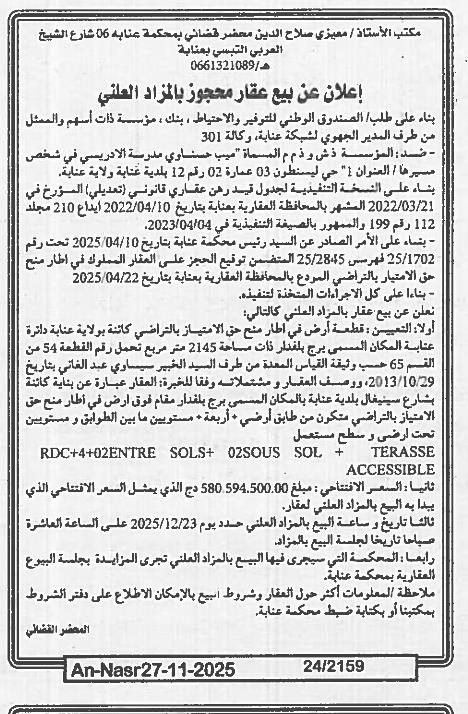 Il sera procédé à la vente au plus offrant et dernier enchérisseur le :