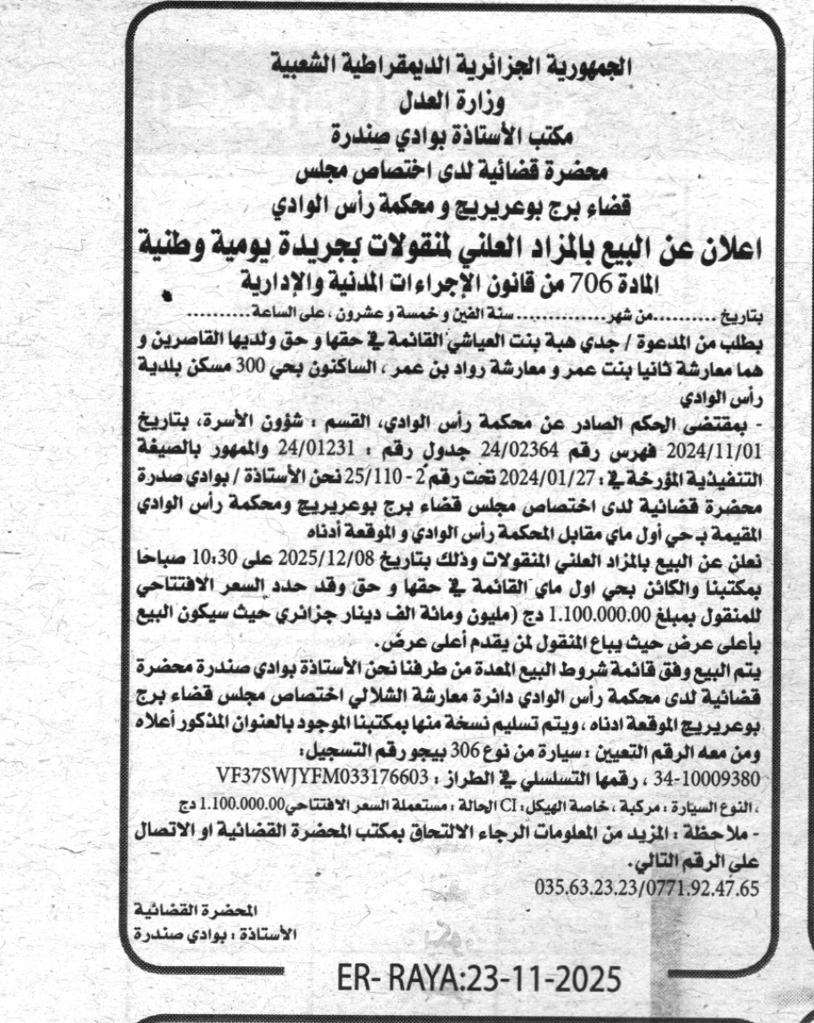 Il sera procédé à la vente au plus offrant et dernier enchérisseur le :