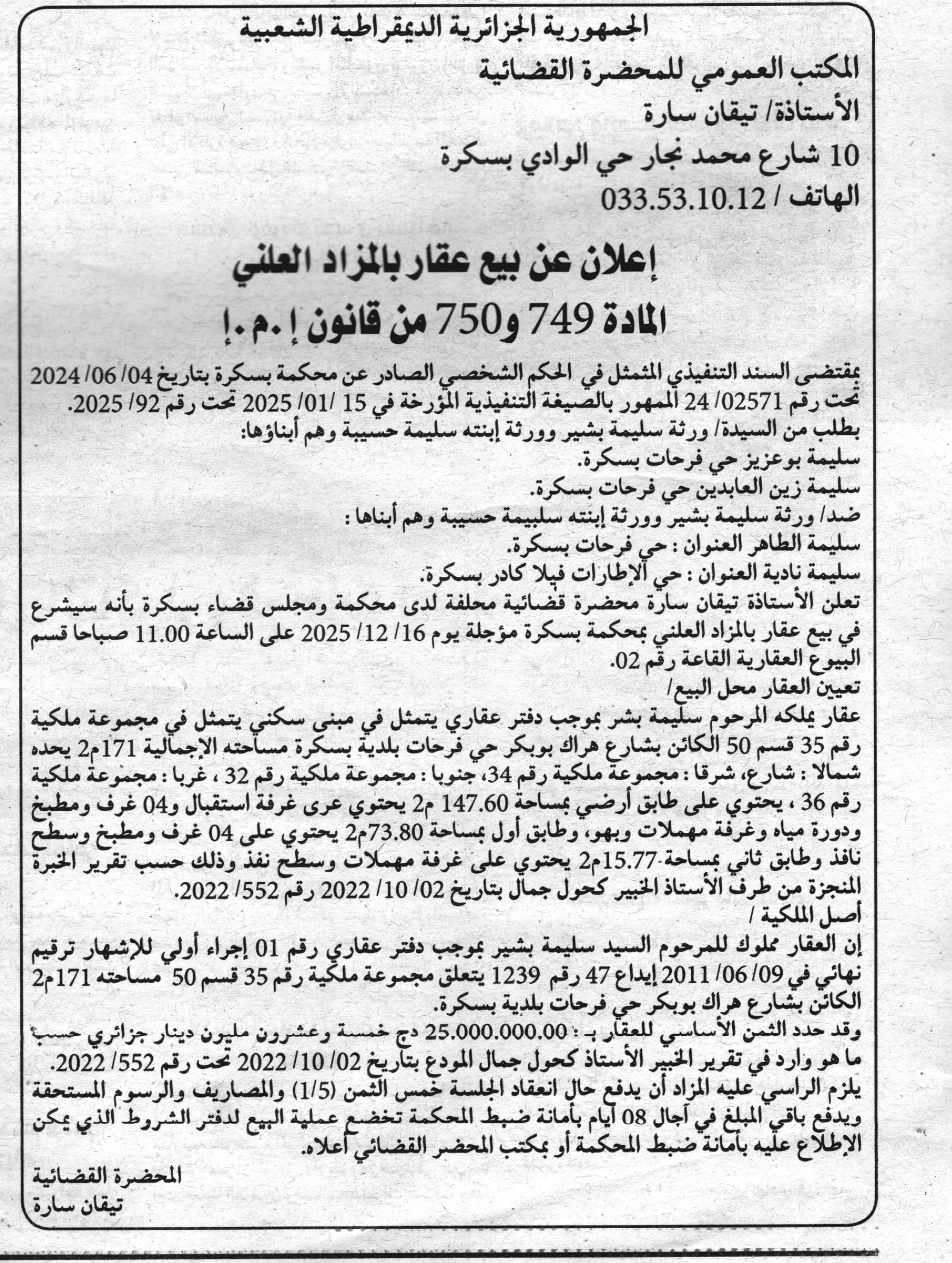 Il sera procédé à la vente au plus offrant et dernier enchérisseur le :