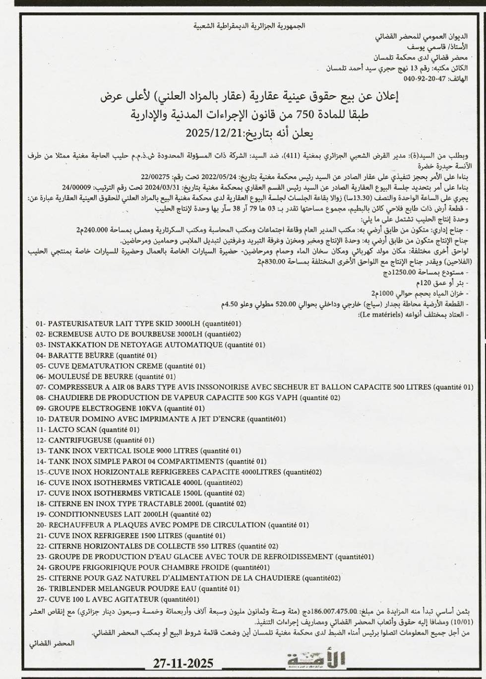 Il sera procédé à la vente au plus offrant et dernier enchérisseur le :