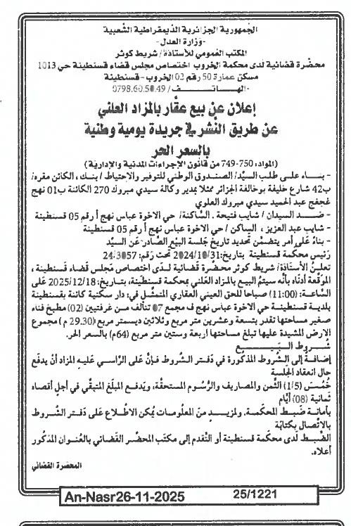 Il sera procédé à la vente au plus offrant et dernier enchérisseur le :