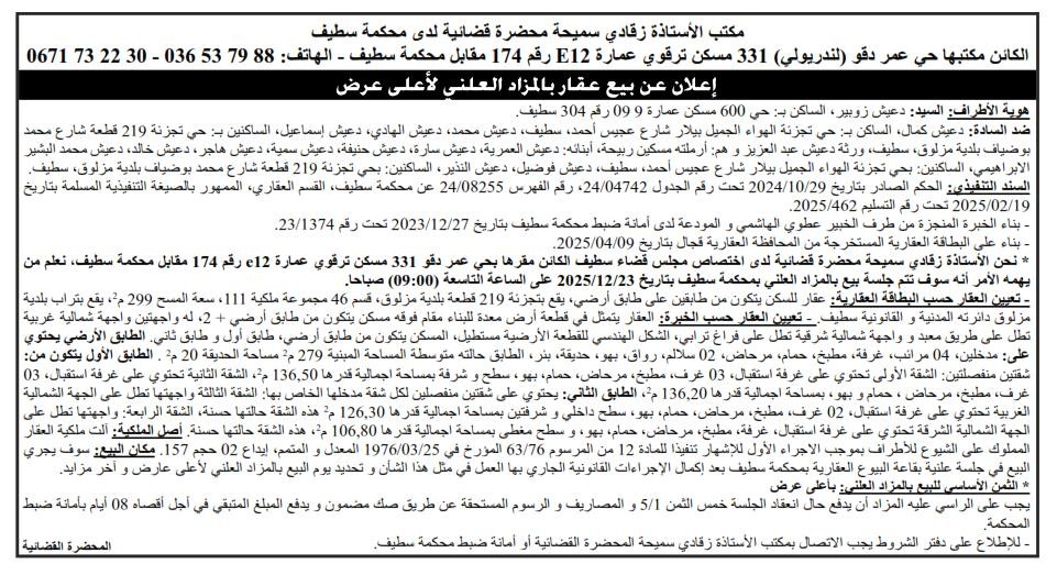 Il sera procédé à la vente au plus offrant et dernier enchérisseur le :