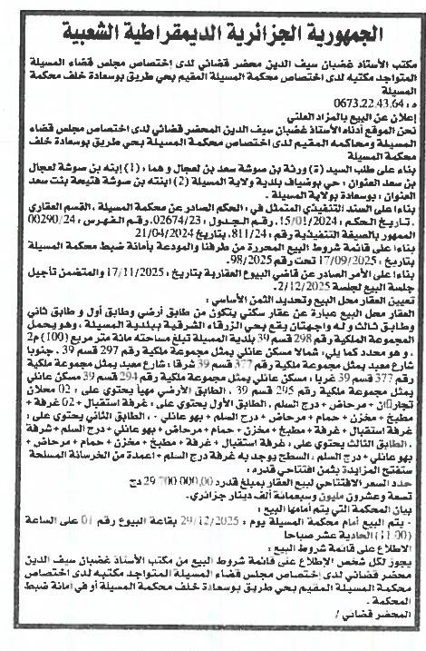 Il sera procédé à la vente au plus offrant et dernier enchérisseur le :